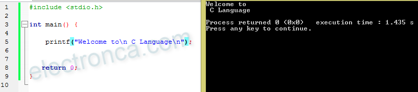printf(“Welcome to\n C Language\n”);